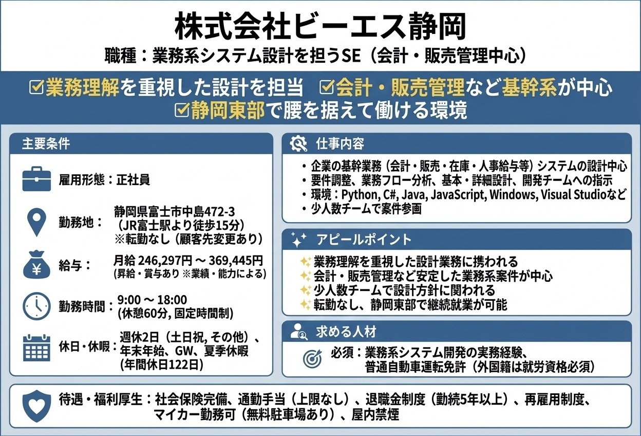 システムエンジニア(PL候補) / 基幹系・WEB系 / 静岡市