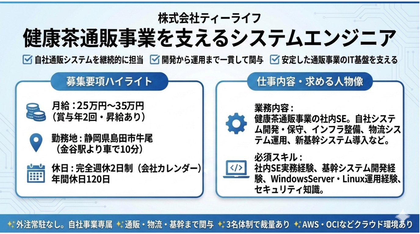 ▼自社通販システムを継続的に担当▼開発から運用まで一貫して関与▼安定した通販事業のIT基盤を支える