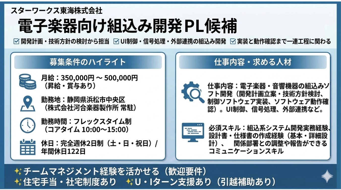 電子楽器向け組込み開発プロジェクトリーダー候補