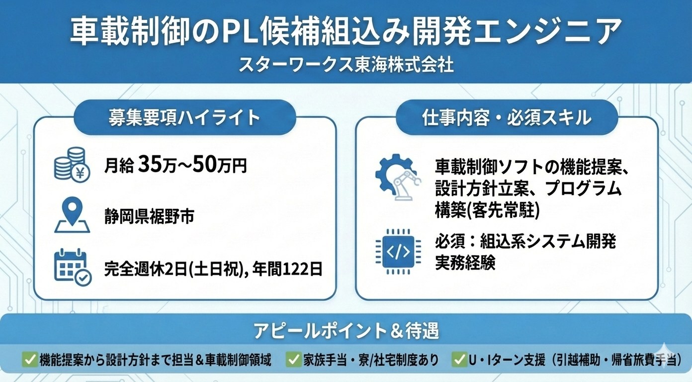 車載制御の組込み開発エンジニア(PL候補)