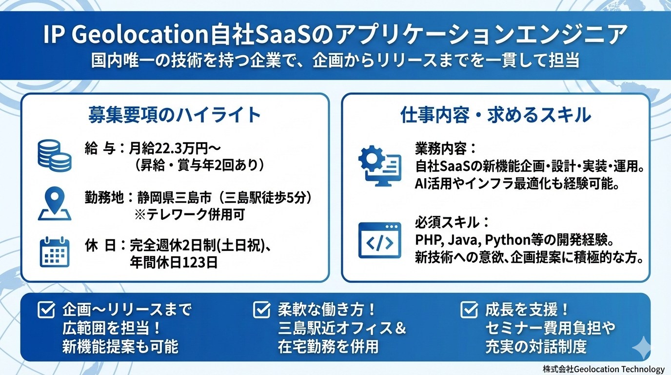 IP Geolocation自社SaaSのアプリケーションエンジニア