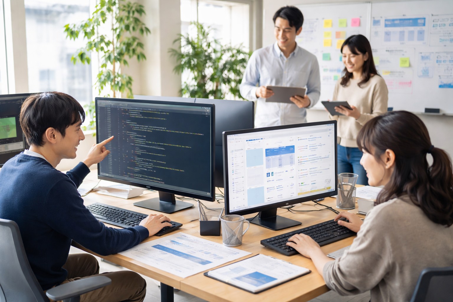 ▼要件に沿ってUI仕様から検討 ▼React/Vueで画面実装を担当 ▼5~10名スクラムで役割分担