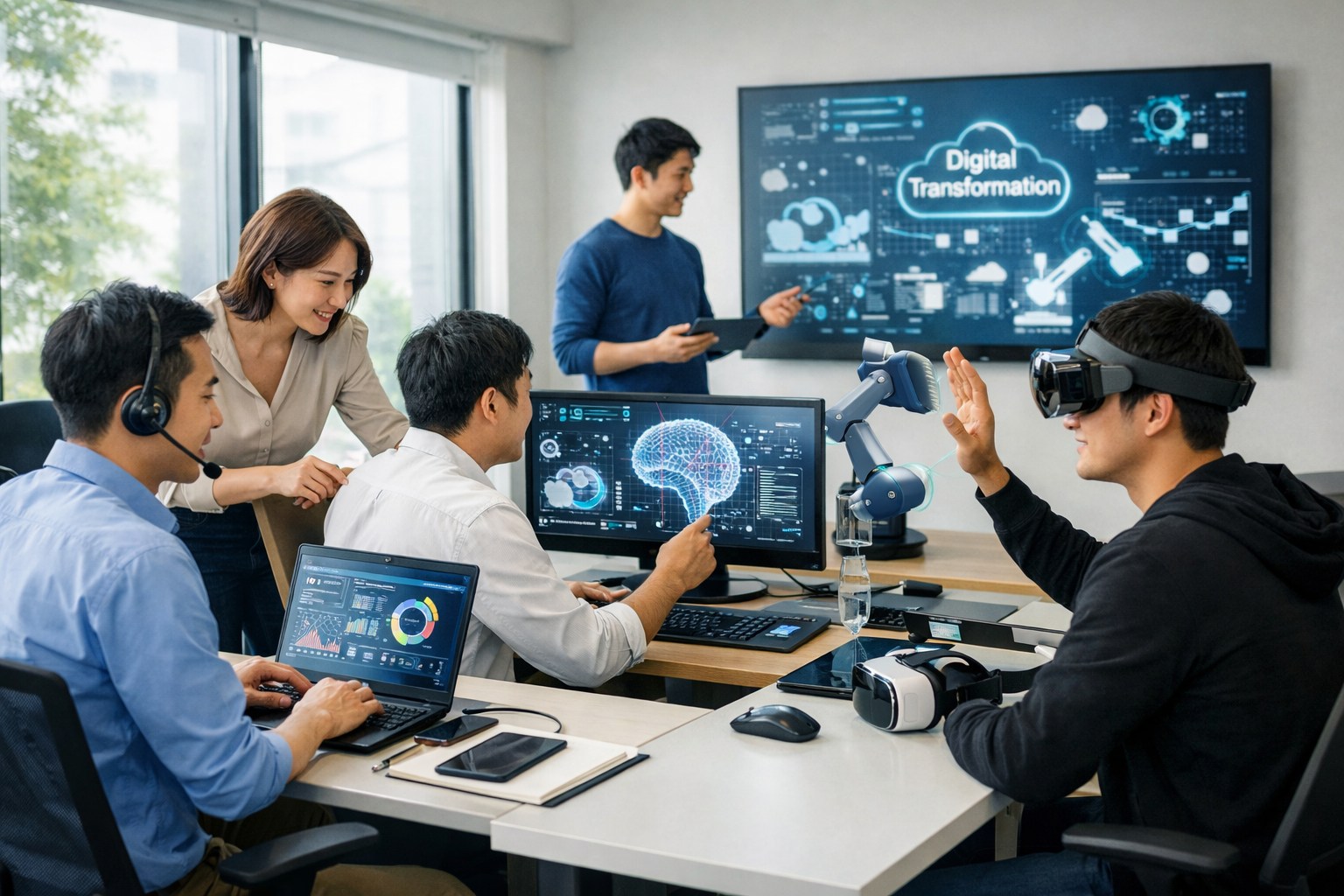 ・要件ヒアリング、PoC実施、クラウド基盤構築、AI・RPA・xR技術の導入支援 など