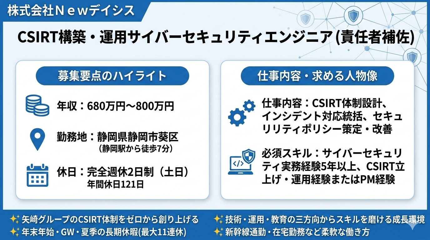 CSIRT構築・運用サイバーセキュリティエンジニア(責任者補佐)