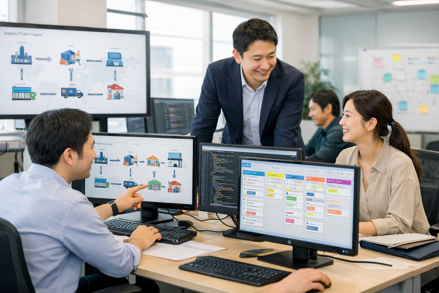サプライチェーン全体のモノの流れと管理手法を理解し、業務要件整理から設計・開発・導入・運用保守まで、システム開発の全工程に携わっていただきます。