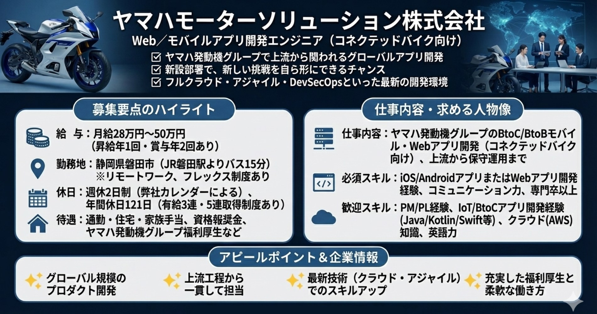 ▼ヤマハ発動機グループで上流から関われるグローバルアプリ開発▼新設部署で、新しい挑戦を自ら形にできるチャンス