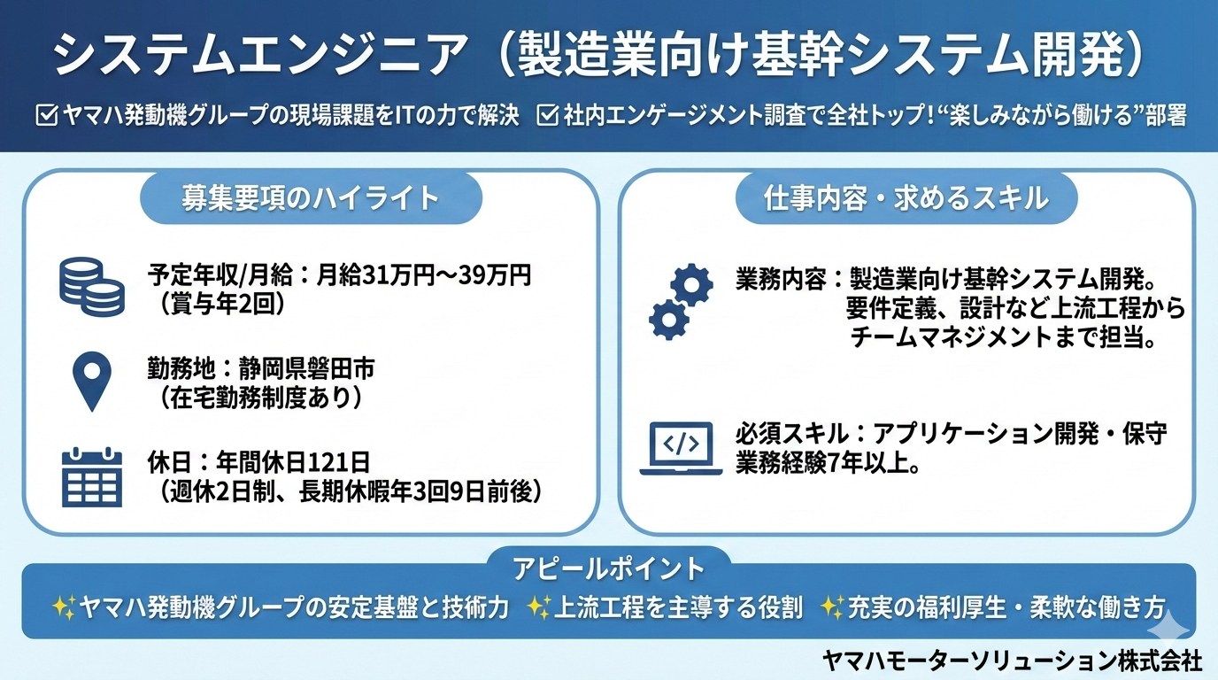 • ★ヤマハ発動機グループの設計部門と共に、真の要望をカタチにし、ものづくりの現場を支えるシステム開発に挑戦