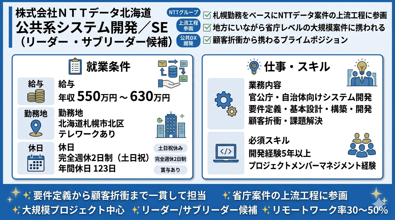 • ★札幌勤務をベースに、NTTデータと協業し省庁案件の上流工程に参画