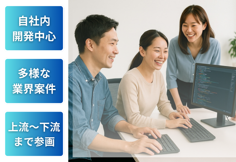地方自治体向けの自社開発CMSを中心に、顧客提案・プロジェクト管理などの上流工程から、設計・プログラミング・テストといった開発工程まで幅広く担当するポジションです。新規導入から運用改善まで一貫して関わっていただきます。